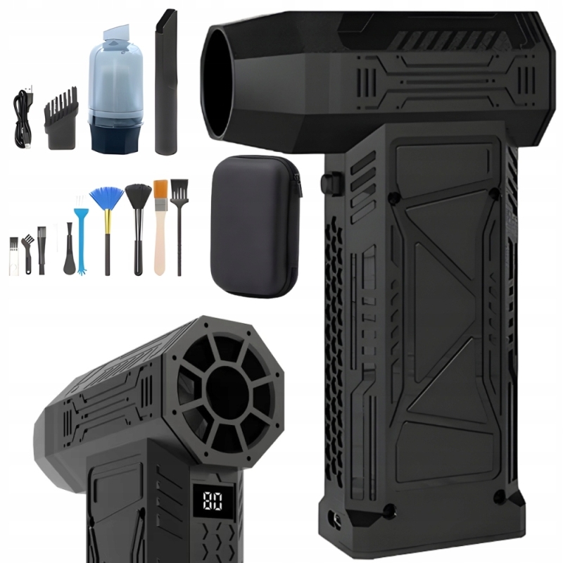 Techninės specifikacijos: - Funkcijos: pūstuvas + rankinis dulkių siurblys - Sukimosi greitis: 130000 aps/min - Maksimalus oro greitis: 51 m/s - Maksimali galia: 180 W - Akumuliatorius: 10 000 mAh - Įkrovimas: USB-C - Įkrovimo trukmė: apie 2 val. - Veikimo laikas: iki 20 minučių - Galingumo reguliavimas: 5 lygiai - Akumuliatoriaus indikatorius: taip - Korpuso medžiaga: ABS - Komplektas: 10 šepetėlių, pūtimo antgaliai, dulkių siurbimo antgalis - Funkcijų keitimas: atitinkamo antgalio pritvirtinimas prie prietaiso galo - Naudojimas: elektronikos, automobilio, įrangos ir sunkiai pasiekiamų vietų valymas